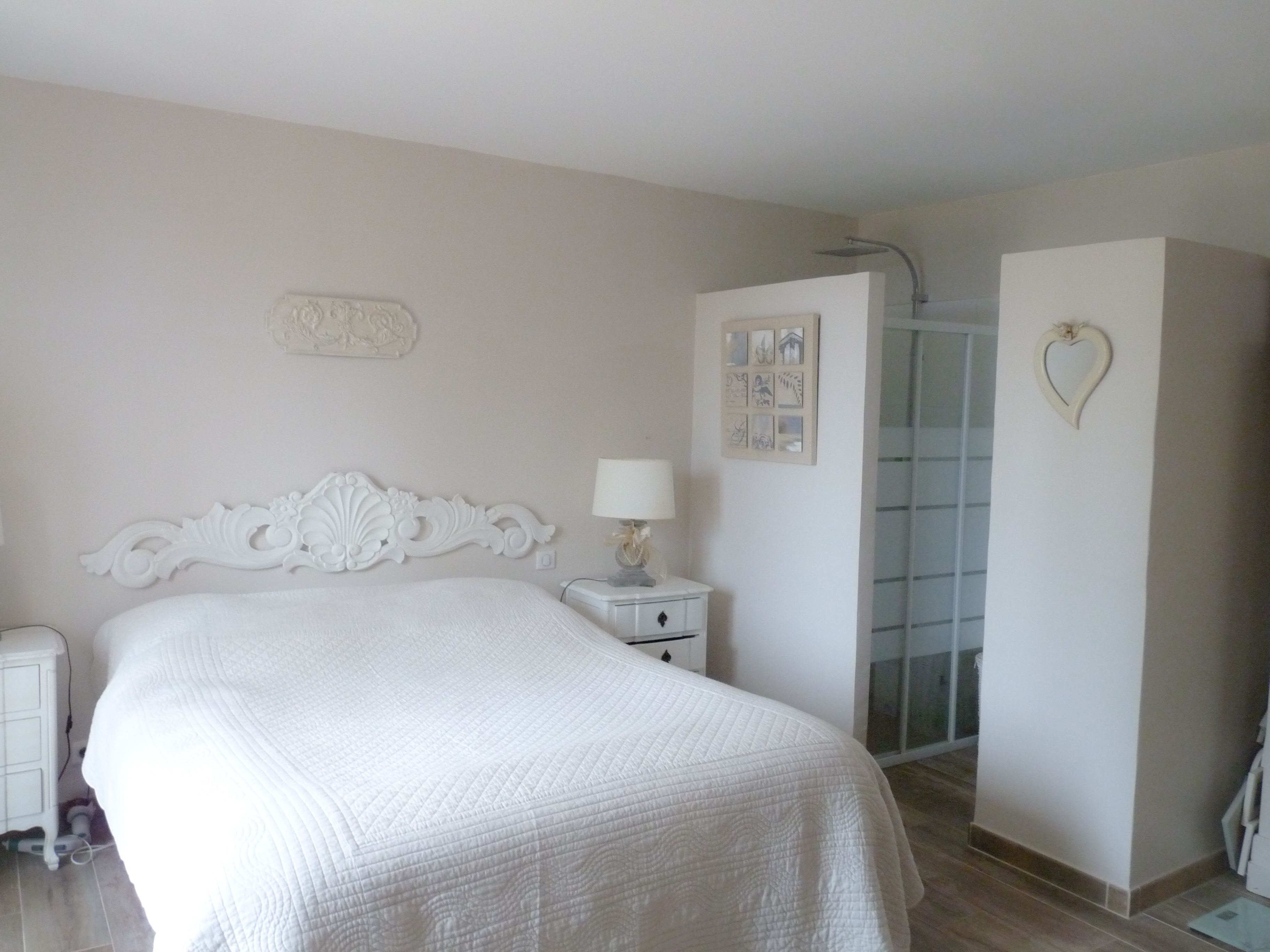 3 chambres dont deux très grandes avec coin douche italienne et lavabo, une salle de bain indépendante avec 2 vasques et douche italienne, 2 WC dont un avec lave main. Décoration très soignée.