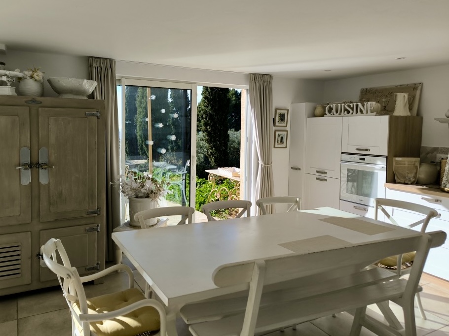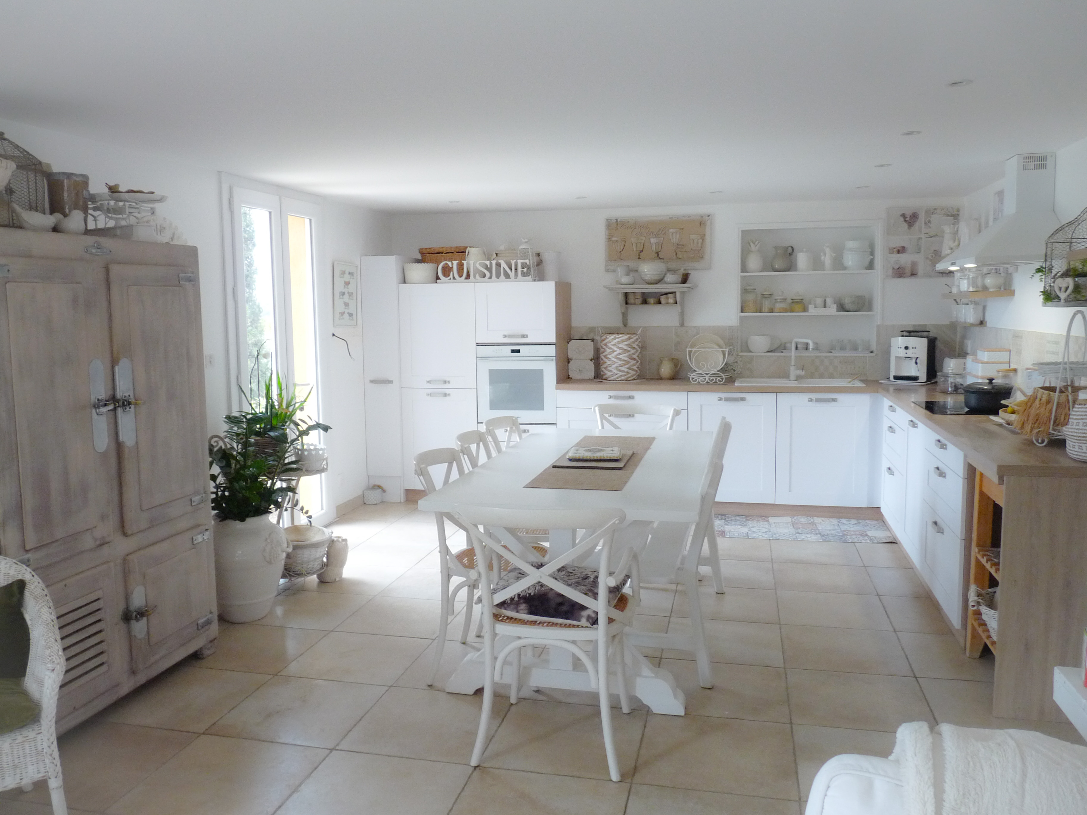 Située à 2km de la mer et des plages, au calme absolu, dans un environnement naturel, propice à la détente, cette lumineuse villa possède une cuisine entièrement aménagée ouverte sur un grand espace repas et salon.